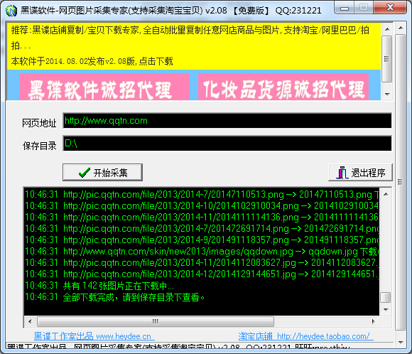 黑谍图片下载专家专门用于网页图片下载,软件能够一键下载某个网页所有图片,无需手动一张张保存。软件支持所有网页图片下载,包括淘宝、阿里巴巴、拍拍、京东等。你可以使用本工具全自动批量复制任意网店商品和图片。