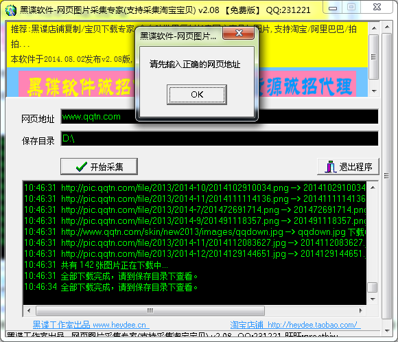 当你点击开始采集之后,软件弹出提示框,提示“请先输入正确的网页地址”。如果是这样你看看,你的网页地址前面有没有加http,没有的话就需要加上。