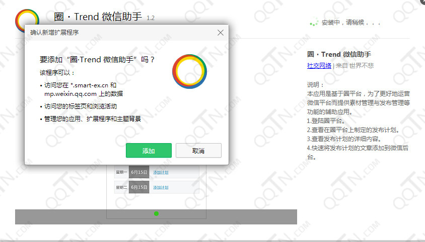 圈Trend 微信助手是一款基于圈平台开发的浏览器插件,主要用于微信公众平台管理使用,查看发布计划、发布任务管理和素材管理等作用。一款非常方便的圈平台辅助应用,欢迎下载。