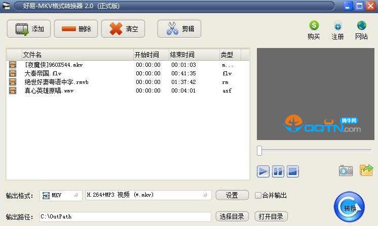 好易MKV格式转换器是一款专门的MKV视频格式转换工具,它可以帮助用户进行高速视频格式转换,同时它支持多种格式,如RM、RMVB、VOB、DAT、VCD、SVCD、WMV、ASF、FLV、MOV、QT、MPEG、AVI、MP4、3GP等,是一款强大的视频转换软件。