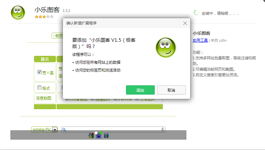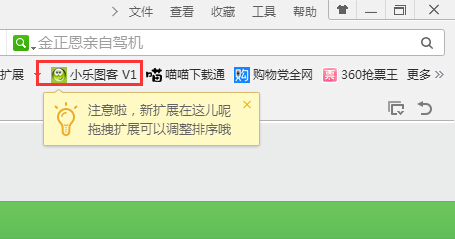 7、添加成功,在浏览器扩展栏可以对小乐图客进行设置