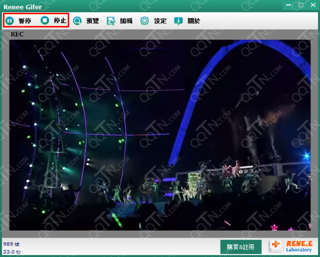 第1步:运行Renee Gifer软体,界面如下,上面是操作按钮区,中间是透明的录制视窗。
