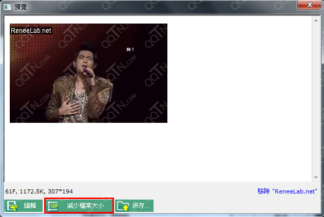 第8步:如果觉得生成的档案比较大,可以在预览视窗中,点选“减少档案大小”,然后再次点选“预览”,生成的GIF档大小就会减少很多了。一个超酷的GIF就完成了,~~~~~很简单吧。