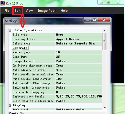 运行 PhotoSift 首先载入要分类的图片,直接将图片拖拽到 PhotoSift 界面就可以了。接着依次点击「Edit」——「Settings」进入编辑界面,对快速分类的键盘进行设置