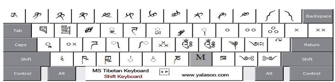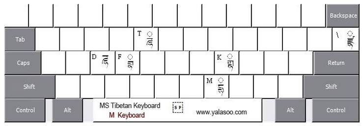 5、M键盘, 对应与国标藏文键盘中的第五个键盘 :