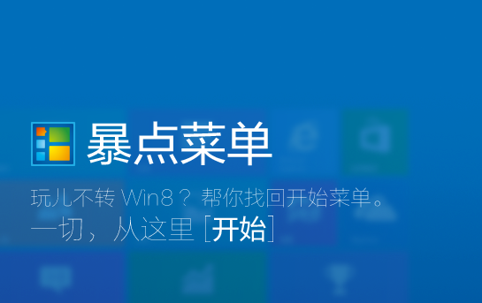 暴点菜单专为Windows8以及Windows8.1系统打造,win8系统,经典的开始菜单没有了,玩不转win8.使用暴点菜单,帮你找回菜单。完美适配win8风格,所有程序分类菜单都能找到;一切,从这里开始。