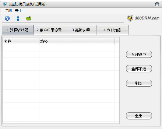 运行加密软件,可看到如下界面. 如果列表里没有您的U盘,请先把U盘插入电脑,再点击"刷新"按钮.