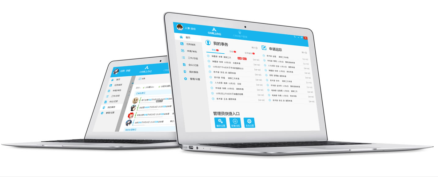 手机OA办公,申请审批,流程管理,任务指派,工作总结,会议记录等,一键操作,随时随地;