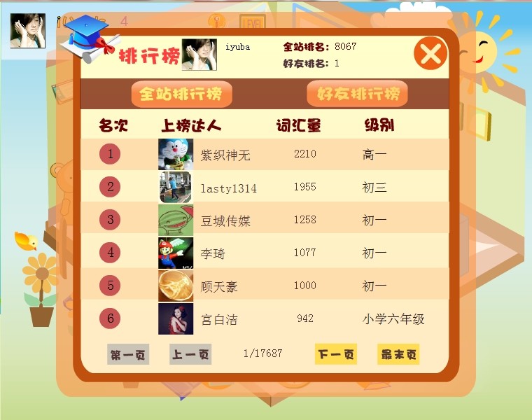 五、排行榜让用户随时看到自己的排名,有学习的动力,激励用户坚持学习。