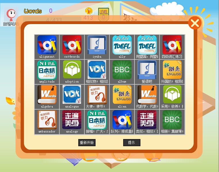 背单词游戏,生动有趣,游戏内容就是你刚背过的单词,让你在不知不觉中轻松记住单词。