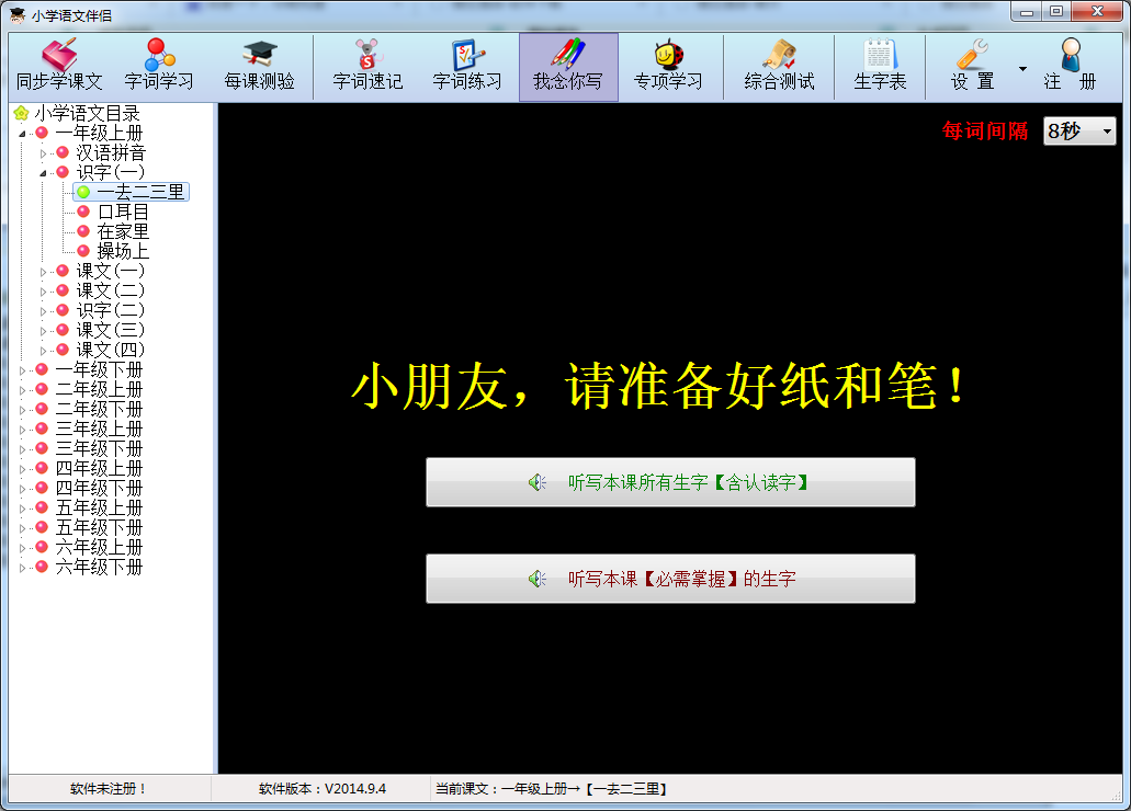5 、“我念你写”功能,可以解决家长陪孩子听写生字的困扰,而且可以自由控制听写的时间间隔等……