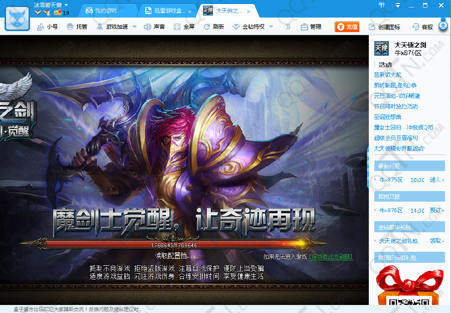 迅雷大天使之剑微端是迅雷牛X页游基于迅雷游戏盒子打造的一款游戏桌面登陆工具,此外迅雷大天使之剑微端还有游戏加速、礼包领取和查看最新活动等信息。
