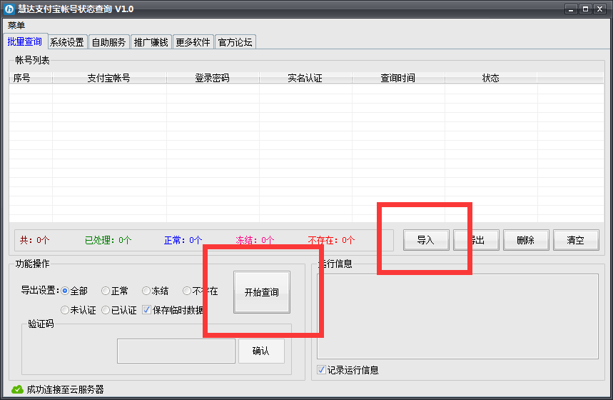 慧达支付宝帐号状态查询软件可以用于批量查询支付宝账号状态,包括是否实名认证、是否存在、冻结、正常。软件多线程运行,支持远程验证码识别,能以最快速查询所有支付宝账号状态信息,免去手工查询的繁琐操作。