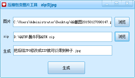 2、点击浏览导入图片和要隐藏转换的zip压缩包文件