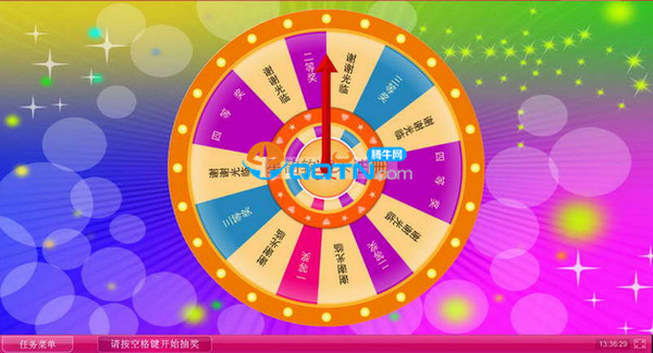 选择【任务菜单】-【系统选项设置】,在下图界面中可选择抽奖转盘模板,在“转盘选项设置”中可任意调整转盘大小,位置,点击“转盘高级设置”按钮可以更改转盘指针样式和颜色。