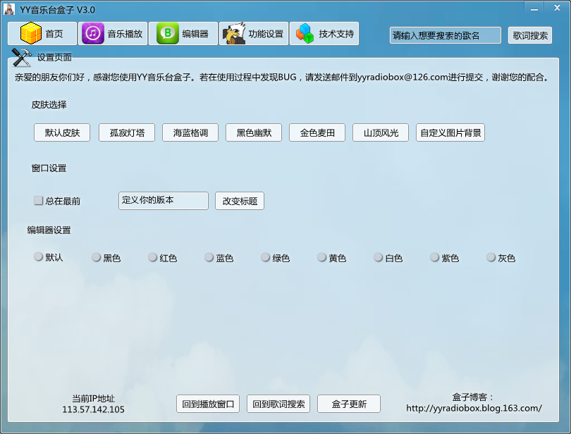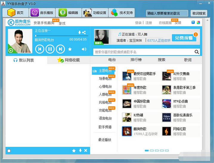 YY音乐台盒子是一款集音乐播放、文本编辑、快速截图等功能于一体的多媒体娱乐软件,软件提供了多种音乐引擎,可以实现多种音乐功能。软件完全免费,绿色安全,方便使用秒,欢迎下载体验。