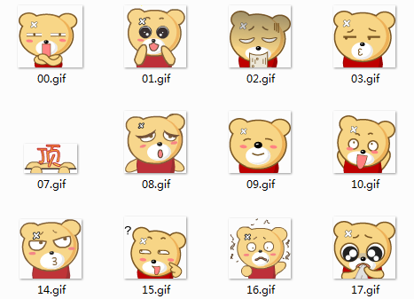 嘚瑟、期待、吐、赞、伤心、被打、顶、叹气、可爱、晕、疑问、害怕、委屈、惊讶、大笑