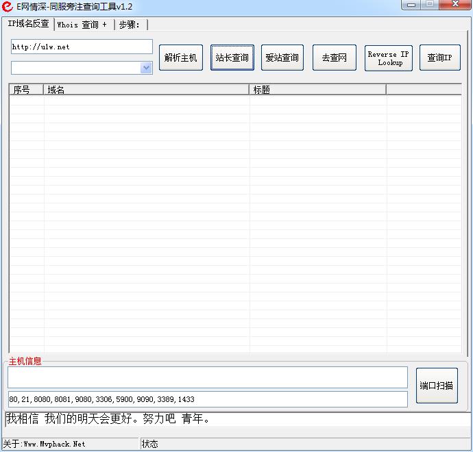 同服旁注查询工具是一款专门帮助你对同网站或者同服务器的IP进行查询的小工具,这款同服旁注查询工具不仅绿色小巧,而且操作简单,它能帮助你进行IP域名反查、whois查询、主机解析等多种功能,是一款强大的IP旁注同服查询工具有,欢迎有需要的朋友下载使用!
