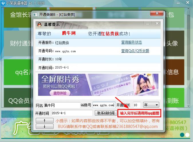 小呆装逼神器是一款由网友小呆制作的QQ装逼神器,这款软件主要是针对QQ的业务开通等信息,支持我的钱包、财付通、QQ资料、QQ会员到账、红钻到账、黄钻到账、QQ飞车装逼等信息进行修改,功能强大仿真度极高,欢迎有需要的用户下载使用!