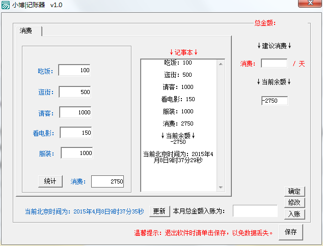 小博记账器是一款绿色小巧且简单实用的财务记帐管理软件,这款记账软件可以帮助你进行日常收支的合理规划,它针对消费方面的记账功能,为你计算出平时的消费费用,如吃饭、逛街、看电影、请客、买衣服等等,让你的收支明细一目了然。