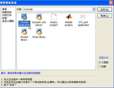 步骤1:Code::Blocks主菜单“文件”→“新建”→“项目…” 弹出如下对话框中,开始“Console Application”。