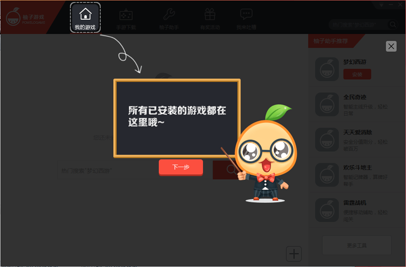柚子游戏是一款电脑玩手游软件,其主要将功能分为我的游戏、手游下载、柚子助手、有奖活动以及我来吐槽五大类,在pc上玩手游更给力!