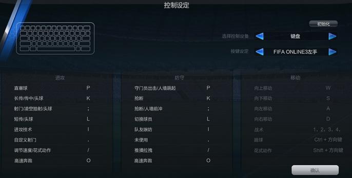 该操作按键设定为FIFA Online 3的默认操作设定。