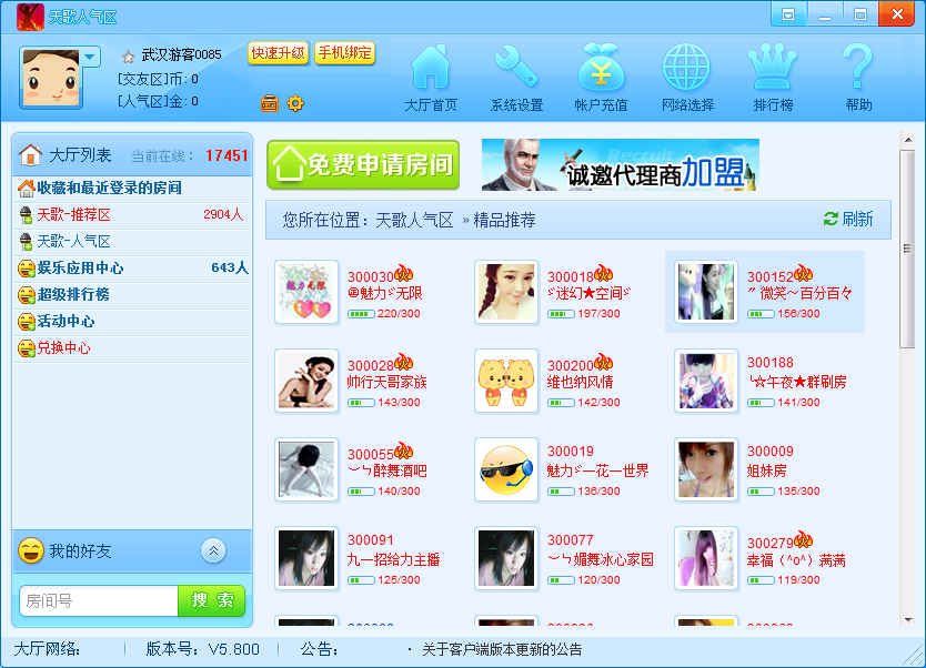天歌人气区电脑客户端是一款中国最大的免费视频聊天网站,拥有数万人同时在线的多人视频交友K歌娱乐平台,同城视频交友、在线K歌娱乐、视频面对面聊天,与美女主播在线互动交友。