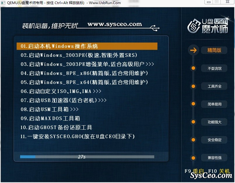 U盘魔术师(USM)是一款强大的必备装机工具,U盘魔术师可以帮助你通过U盘进行快速装机装系统,非常方便好用,它专门针对移动设备、光盘设备、本机系统的PE系统而制作,U盘魔术师(USM)不仅拥有精美的界面,而且简单易用、功能全面、自定义强,是装机人员的必备工具。