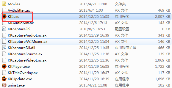 1、下载解压KK录像机绿色版软件压缩包,进入KKcapture文件夹
