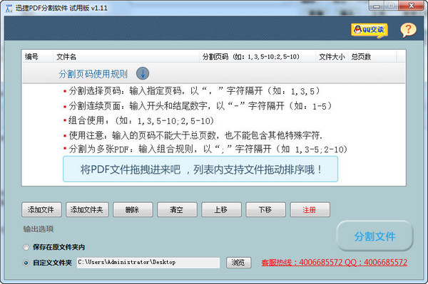 迅捷pdf分割软件是一款实用的PDF文件分割器,该软件是你的PDF文件分割好帮手,它能帮你将一个完整的pdf文件自由分割成多个小的pdf文件,自动处理多个PDF文件分割,支持命令行和批处理,支持文件拖放,让你能批量快速处理多个PDF文件,还能实现pdf文件单页、连页等方式的分割。
