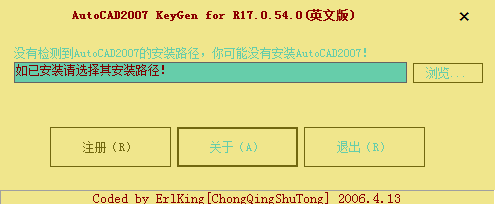 1、打开AutoCAD2007注册机软件,选择你AutoCAD2007安装路径。