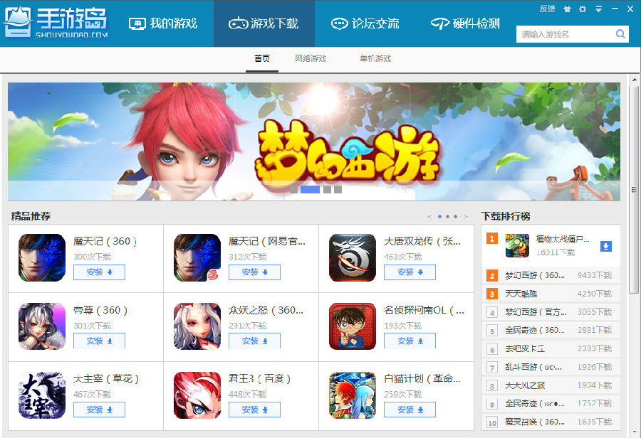 游戏有网络游戏和单击游戏,小编以梦幻西游为例,单击“安装”按钮即可安装。