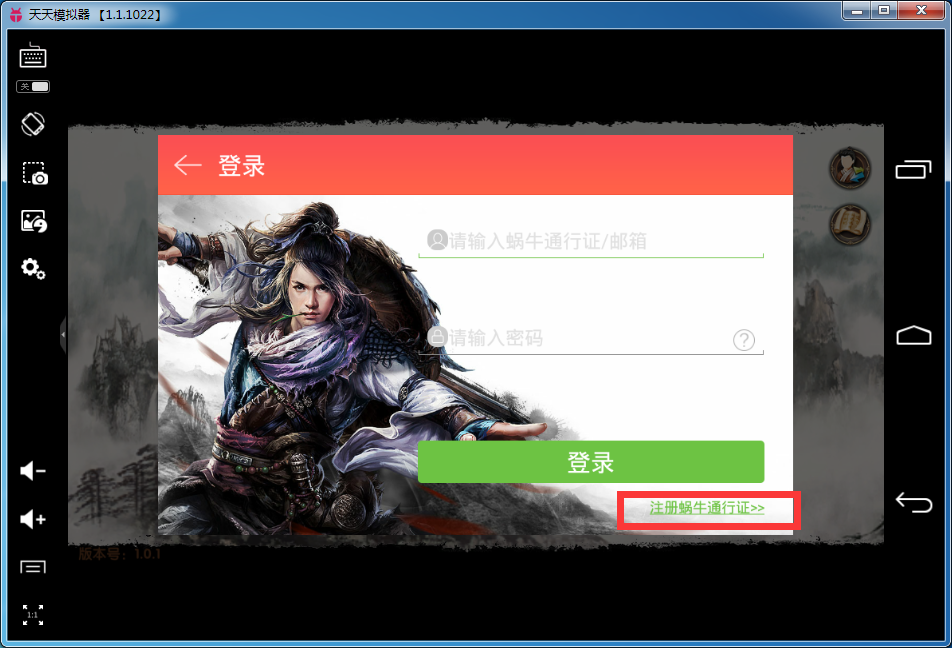 4、如果你有蜗牛游戏通行证,可以直接登录,没有点击注册蜗牛通行证