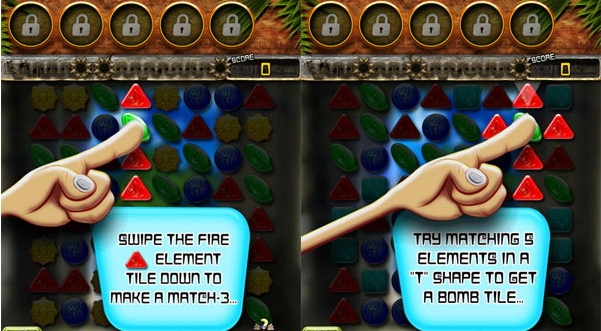 这款游戏是以三三消除为基础玩法,规则无非是在指定的步数内,互换宝石,把三个或以上数量、颜色相同的宝石连成直线、横线、L 型和十字型,就可以把宝石消除。消除了4-5颗宝石,还可以获得制造大规模消除的特殊宝石。