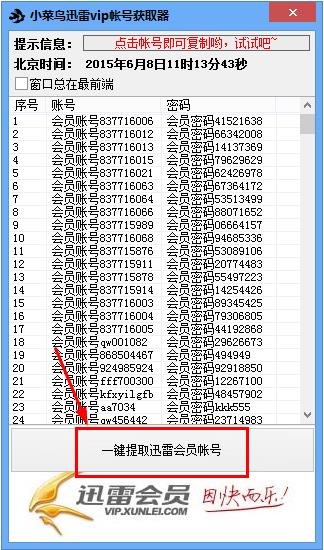 • 小菜鸟迅雷vip帐号获取器1.0 免费版
