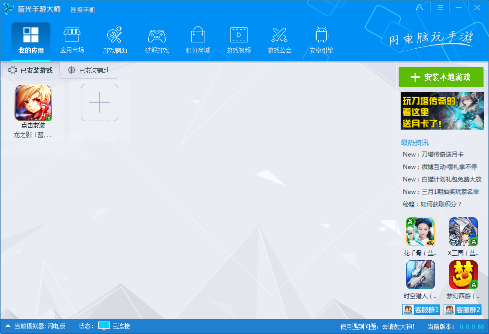 4、软件会打开蓝光手游大师,并且自动下载《龙之影电脑版》游戏。