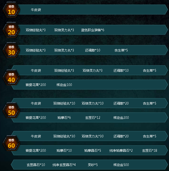 为了帮助你更好的体验补天志的新版本,本次我们为每一个角色都准备了成长礼包,当你登陆之后,就能在你的包裹中找到它.随着角色等级的成长,会不断的给与你相应的奖励。