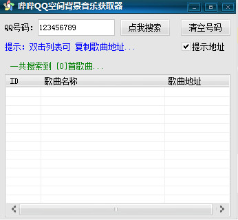 输入你想查询的QQ号码,即可获取该QQ空间背景音乐列表所有歌曲。