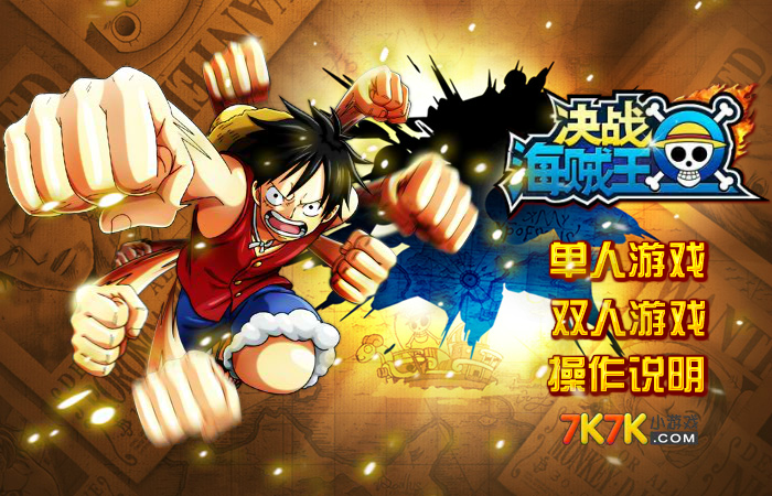 7K7K决战海贼王是一款闯关冒险类小游戏,该游戏提供了单人游戏和双人游戏两种模式,简单好玩和原版动漫人物一起体验海贼梦!