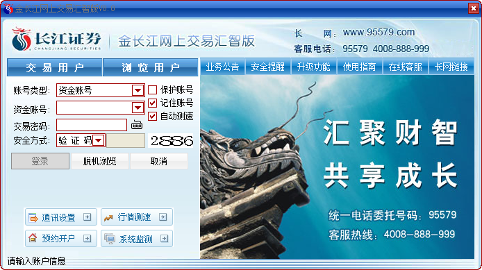 汇聚财智,共享成长,“金长江汇智版”由长江证券提供,全名“金长江网上交易汇智版”,拥有行情测速、预约开户、系统监测、网上交易等功能。