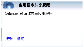 程序将检查对方是否安装该插件,如果对方已经安装该插件,将弹出应用程序共享的邀请提示,对方点击“接受”即可建立连接,如图1.5所示。