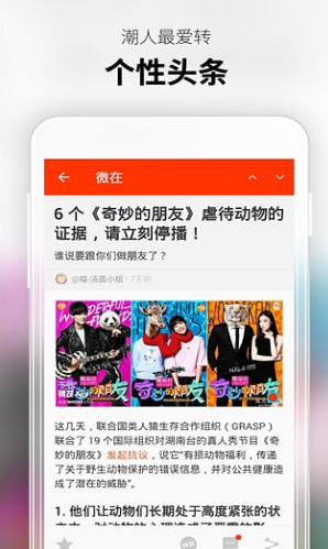 帮助你玩转社交媒体,成为朋友圈里最潮的话题王。每天即时推送最有趣和最具有传播力的新鲜事,提供最个性、最精致、最淘气、最潮的角度,生产让你在朋友圈帅炫酷毙的趣味病毒内容。