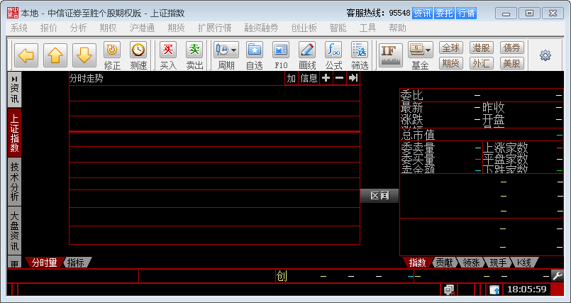 信息栏:用来显示滚动条、连接状态、预警提示灯、股灵通及系统时间等信息。