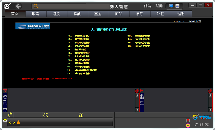 国都证券大智慧版支持股票、港股、指数、基金、商品、债券、外汇、理财等多种网上交易方式,并有专业的分析系统帮助更好的做出抉择。