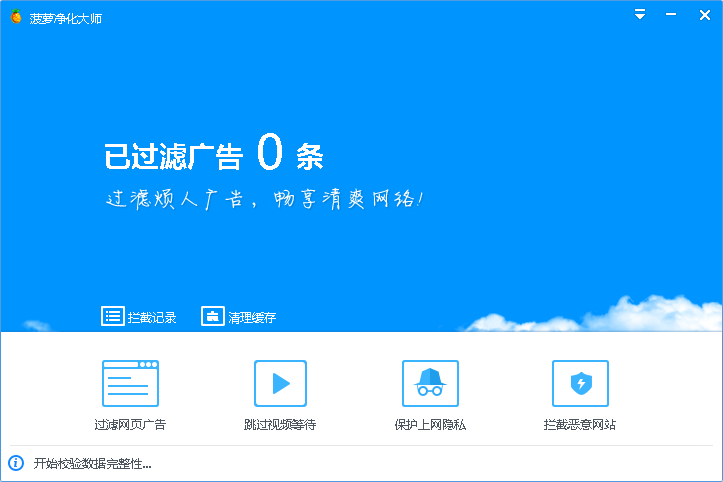 安装成功后启动菠萝净化大师,软件运行后就会自动过滤所有网络广告,无需进行设置或调试。