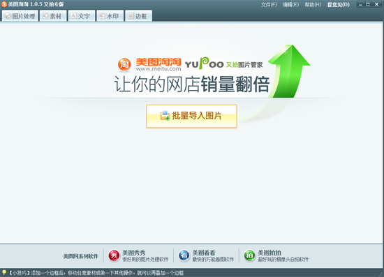 美图淘淘又拍版是美图秀秀与又拍网量身定做的一款网店图片处理软件,帮助又拍网店主快速便捷的制作版图。