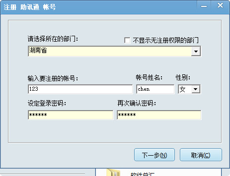注册时只需要填写自己所在省市输入账号,账号名等信息