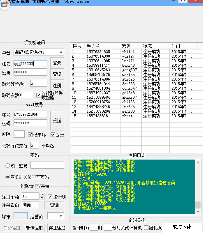 美团账号批量注册机是一款吾爱专版美团账号批量注册工具,它可以帮助你对美团账号进行批量注册,当你想要在美团上面买电影票,特别是团购的时候,一个号只能买一张怎么办,用这款吾爱专享版美团账号注册,多注册几个账号就可以买了哦,而且是不同的ip,注册十几个完全没问题啊!
