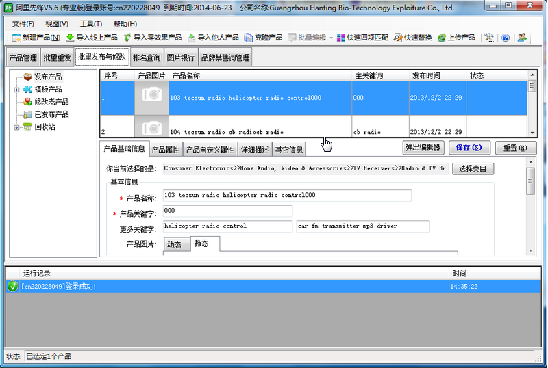 网易云音乐pc客户端v2.10.6.200601 最新版阿里先锋是阿里巴巴国际站第一款用软件代替手工上货的自动化营销软件。可以实现产品智能批量发布,具有多关键词全方位覆盖,自动产品更新,批量删除零效果产品,智能关键词组合标题,关键词排名查询等功能,还有批量编辑、修改、重发产品等功能。